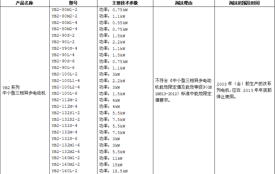 以上3張圖片就是YB2系列防爆電機將被淘汰的范圍和時間,也羅列出來了關于為什么要淘汰這一部分YB2系列防爆電機的原因。如大家還有什么疑問,可撥打公司電話詢問。