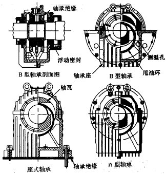 滑動軸承作為防爆電機(jī)的主要部件,其開發(fā)設(shè)計及制造技術(shù)在近年來有了很大的發(fā)展。現(xiàn)已發(fā)展成為一個成熟的產(chǎn)品,并且已系列化、標(biāo)準(zhǔn)化、通用化,有專業(yè)的滑動軸承生產(chǎn)廠。在防爆電機(jī)中使用的滑動軸承主要有以下幾種類型:A型端蓋式球面滑動、B型端蓋式球面滑動、座式球面滑動軸承。