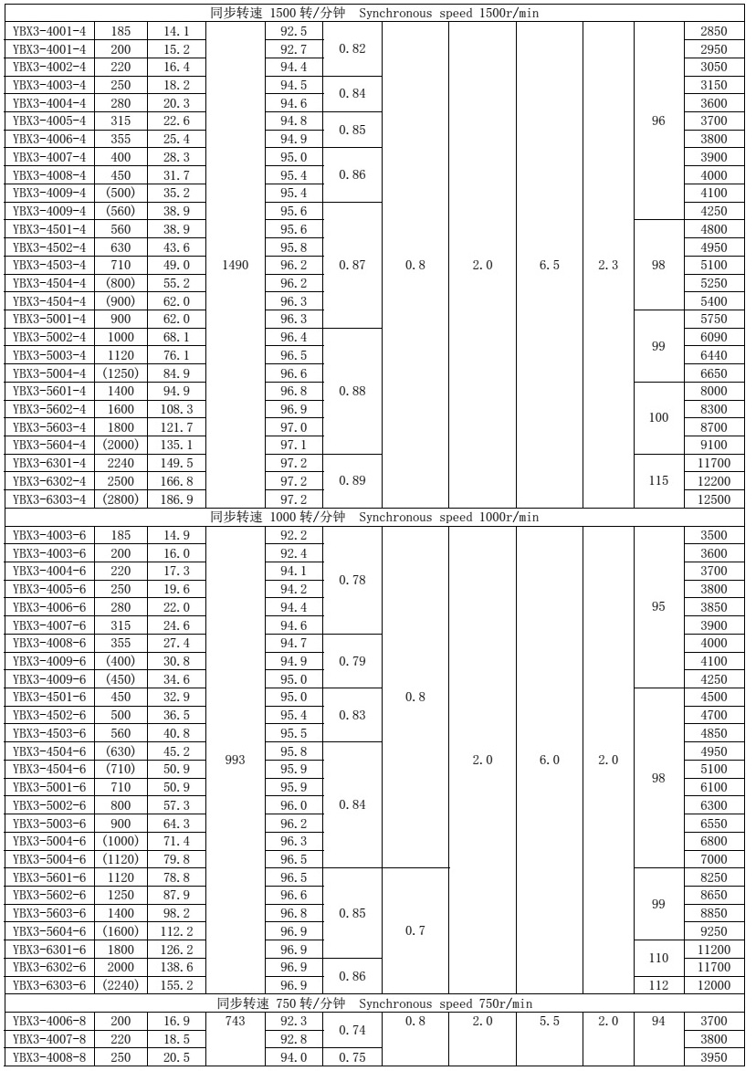 型譜中帶有括號(hào)的規(guī)格電機(jī)溫升按F級(jí)(105K)考核,其余規(guī)格可按B級(jí)(80K),如要求括號(hào)中功率規(guī)格的溫升按B級(jí)(80K)考核,型號(hào)應(yīng)當(dāng)向下順延一檔。