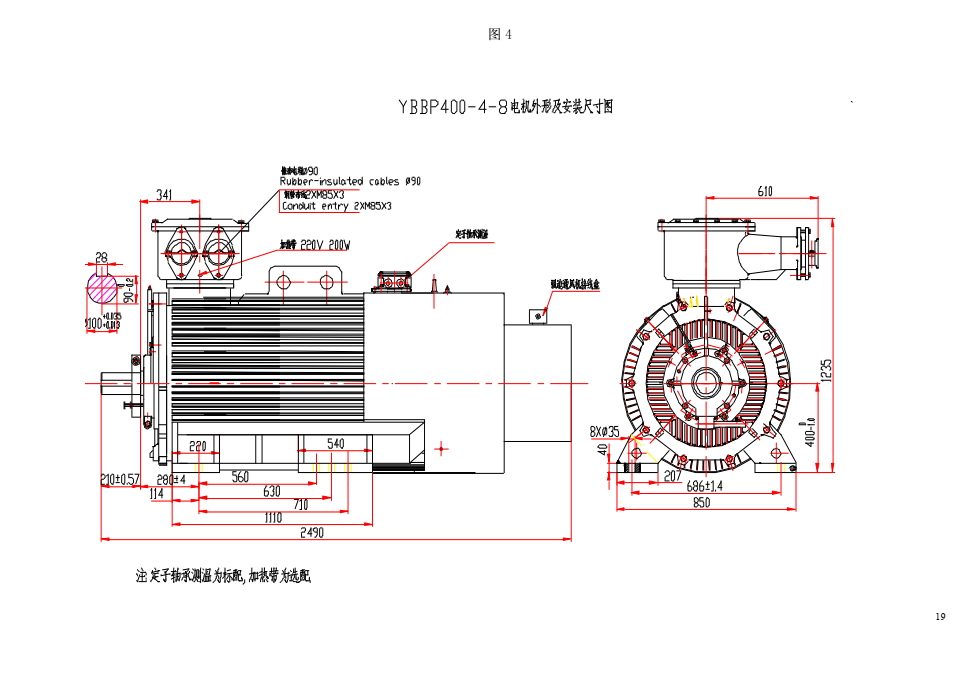 2、強迫通風(fēng)用小電機(冷卻方式為IC416時)所用電源條件為額定電壓380/660V或660/1140V,額定頻率50Hz的獨立三相交流電源。