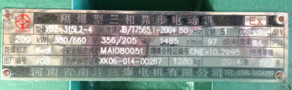 今天上午有個(gè)客戶打來電話詢問是否有YB2系列4P200KW防爆電機(jī)的現(xiàn)貨,我說有的。然后我就把YB2系列4P200KW防爆電機(jī)的銘牌給客戶發(fā)過去了。然后客戶需要回去商量一下,下面為大家列出YB2系列4P200KW防爆電機(jī)的銘牌。如果大家有需要購買YB2系列防爆電機(jī),可以和我們河南省南洋防爆電機(jī)生產(chǎn)廠家聯(lián)系,我們會(huì)為您竭誠服務(wù)的。