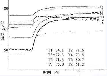 我們經(jīng)常選用的電機(jī)溫度測量方法主要有如下四種:①溫度計法;②電阻法;③埋置檢溫計法;④粘貼測溫紙法。這里所介紹的溫度測試采用上述第一種方法,溫度傳感器為實驗室較 容易制作、價格低、校準(zhǔn)方便的銅-康銅熱電偶,該熱點偶分度號為T型,測試溫度范圍在- 200~400 ℃之間。它可把溫度信號直接變成按一定規(guī)律變換的弱電壓信號,通過一塊或兩塊A/D轉(zhuǎn)換卡,與PC機(jī)直接相連,使用專門配套溫度測試軟件,即可同時測試8點或16點不同 位置的溫度,并在微機(jī)顯示器上直接顯示所有測試點當(dāng)前和歷史記錄的溫度數(shù)值或溫度曲線。該A/D轉(zhuǎn)換卡為智能ISA總線,具有光耦隔離、抗干擾能力強(qiáng)、精度高(±0.05%) 可靠性高等特點。由于溫度場和溫度傳感器的熱慣性較大,因此,采集轉(zhuǎn)換一組數(shù)據(jù)最小間隔設(shè)置為3 s即可滿足大多數(shù)的測試要求,對于電機(jī)溫度試驗也是適用的。