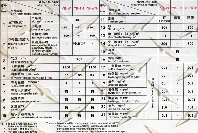 本系列電機(jī)是在YB2系列上派生的全封閉自扇冷鼠籠式隔爆型三相異步電動(dòng)機(jī),分別適用于W-戶外輕腐蝕地區(qū),TH-戶內(nèi)溫?zé)岬貐^(qū)和WTH-戶外濕熱帶地區(qū)輕腐蝕環(huán)境具有爆炸級(jí)別IIA、IIB級(jí),溫度級(jí)別T1-T4組的爆炸性氣體混合物存在的危險(xiǎn)場(chǎng)所。